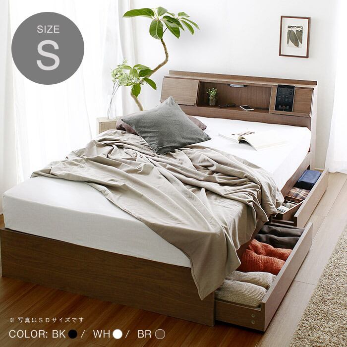 (Sサイズ)FLAP【フラップ】USB付き 多機能ベッドフレーム・マットレスセット