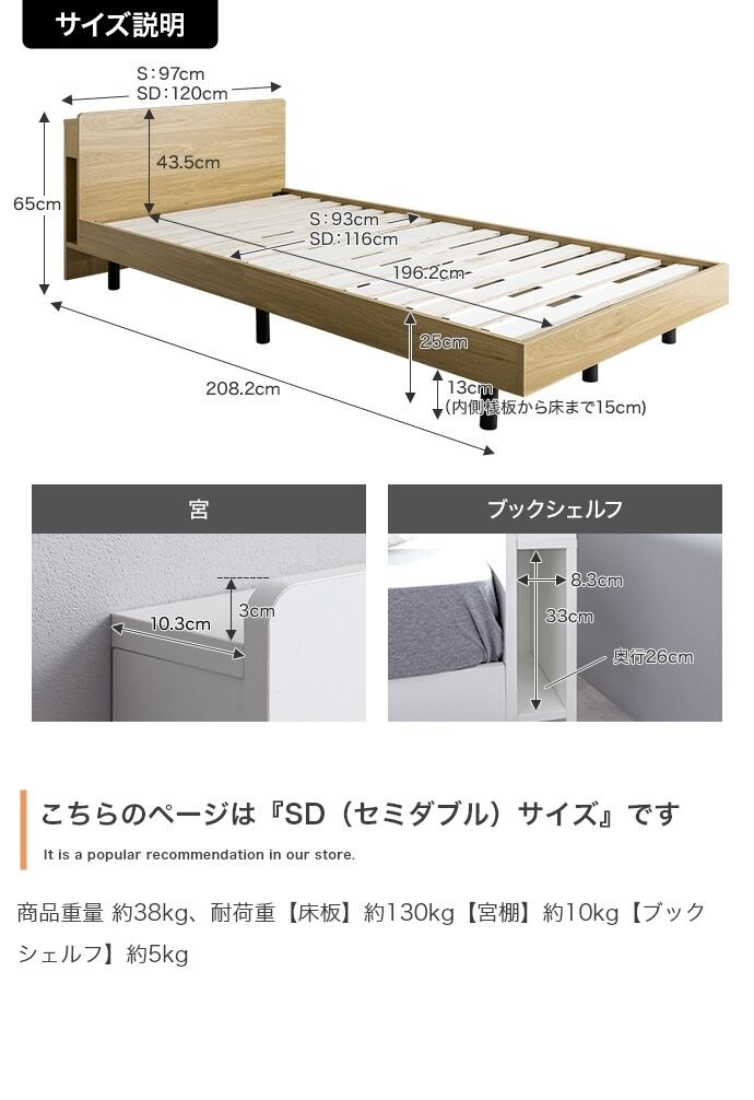 【耐荷重】床板:約130kg、宮棚:約10kg、ブックシェルフ:約5kg