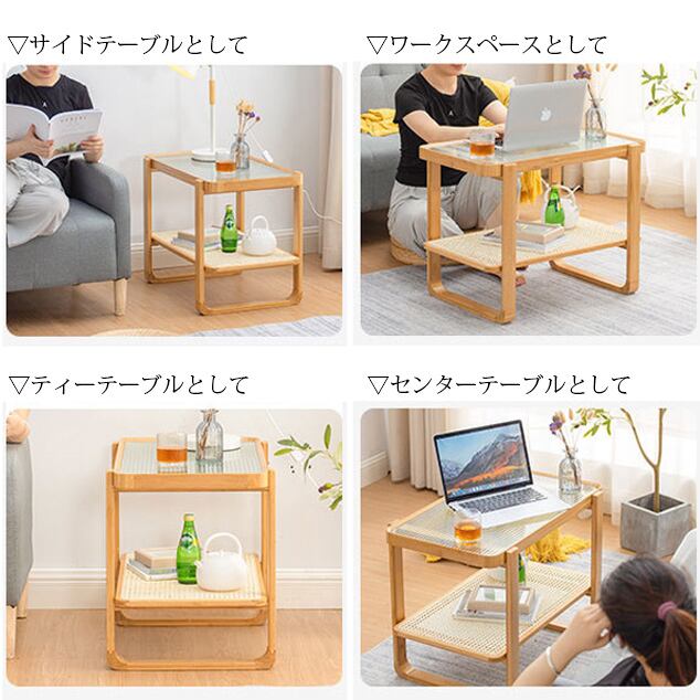 サイドテーブル ガラス天板 ラタン調 コーヒーテーブル リビングテーブル コンパクト 韓国インテリア