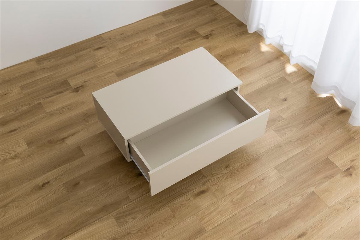 バイカラーの配色が特徴的な『Pom』引き出し付きセンターテーブル