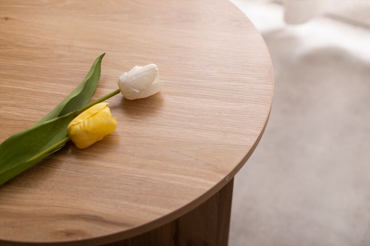 丸い天板と個性的な脚部がこなれた空間を演出する『Luna(ルナ)』ラウンドセンターテーブル