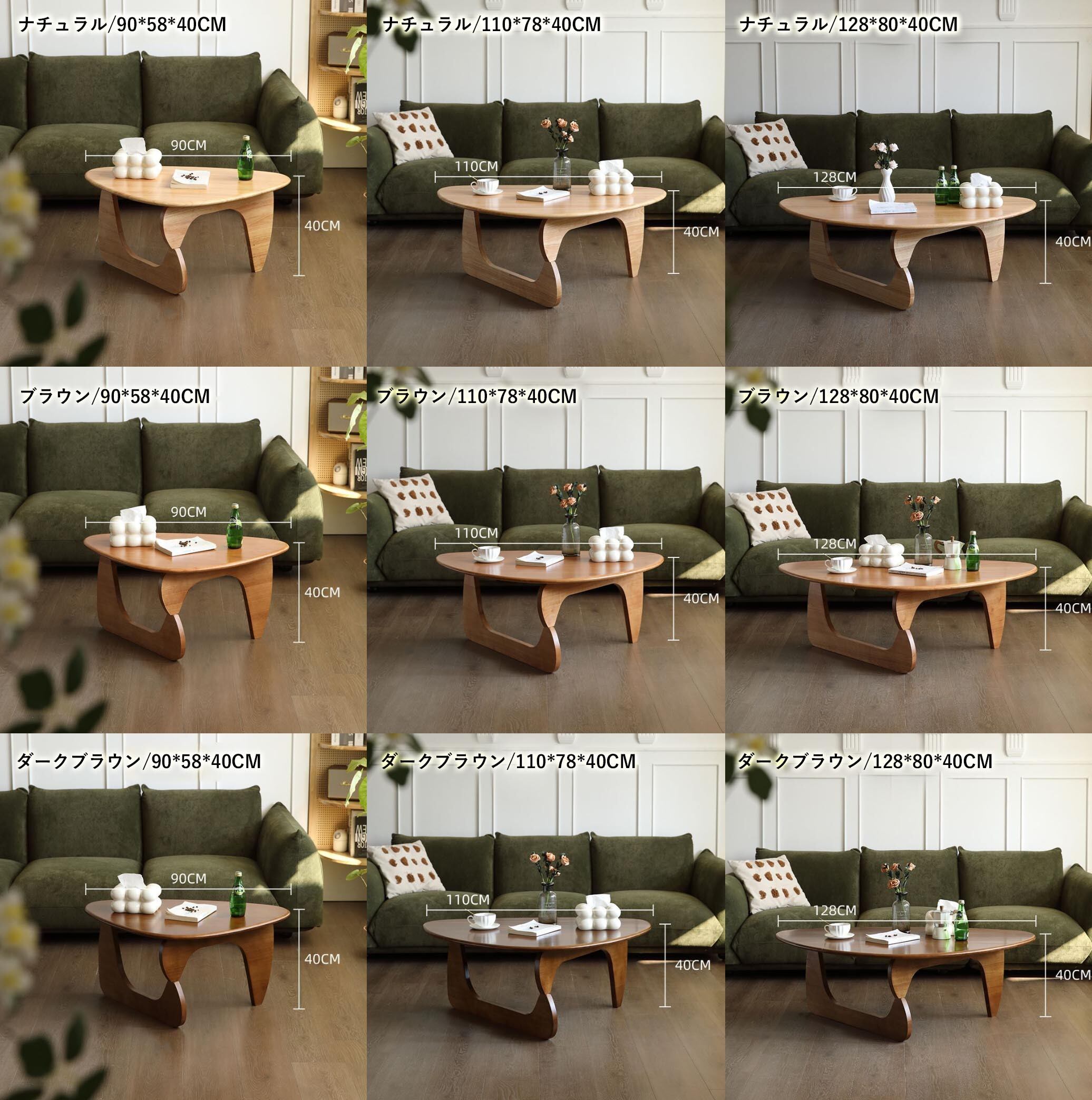 (128*80*40CM)無垢材 木製 ローテーブル リビングテーブル センターテーブル シンプル モダン カフェ風 オーバル