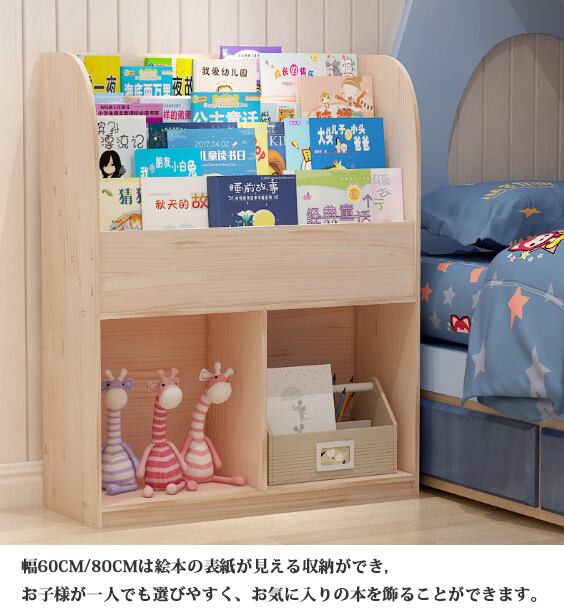( 幅80CM)本棚 子供部屋 本収納 無垢材 お洒落ラック 小学生 幼稚園 ランドセル収納 木製