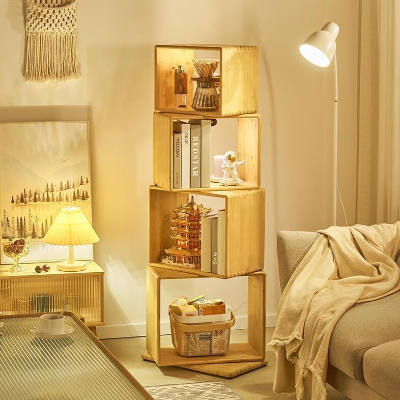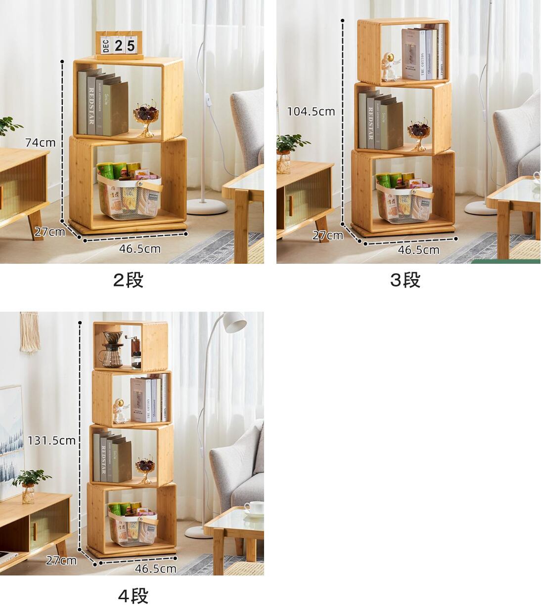 (3段)スクエア 回転本棚 子供部屋 本収納 コミックラック お洒落ラック 回転 バンブー本棚 サイドテーブル