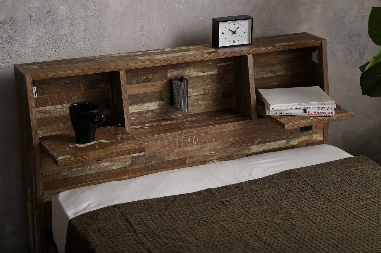 【セミダブル】Cave 寄木柄引出し付ベッド(超高密度ハイグレードポケットコイル付き)
