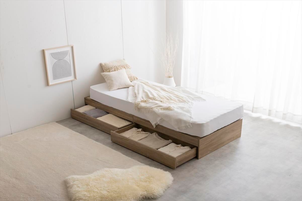 【セミシングル】限られたスペースの方におすすめの『Glad』ヘッドレス収納付きベッド。