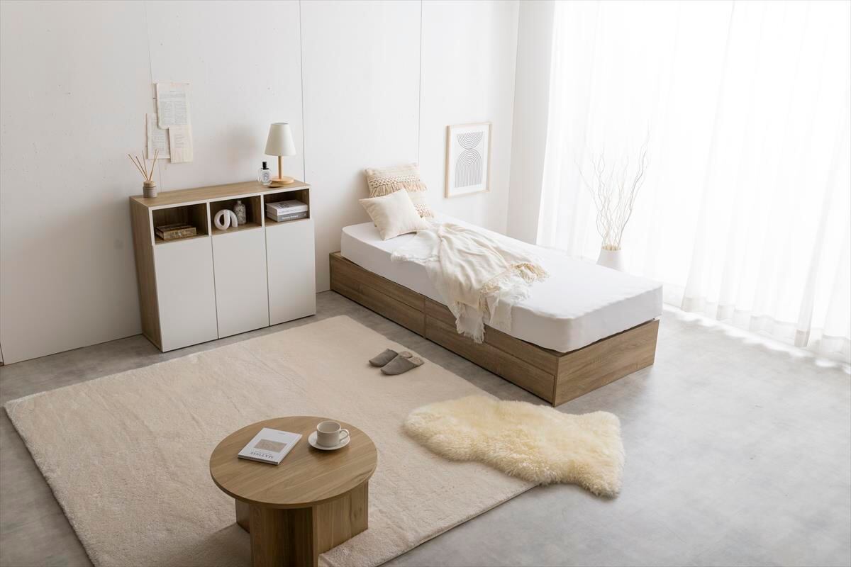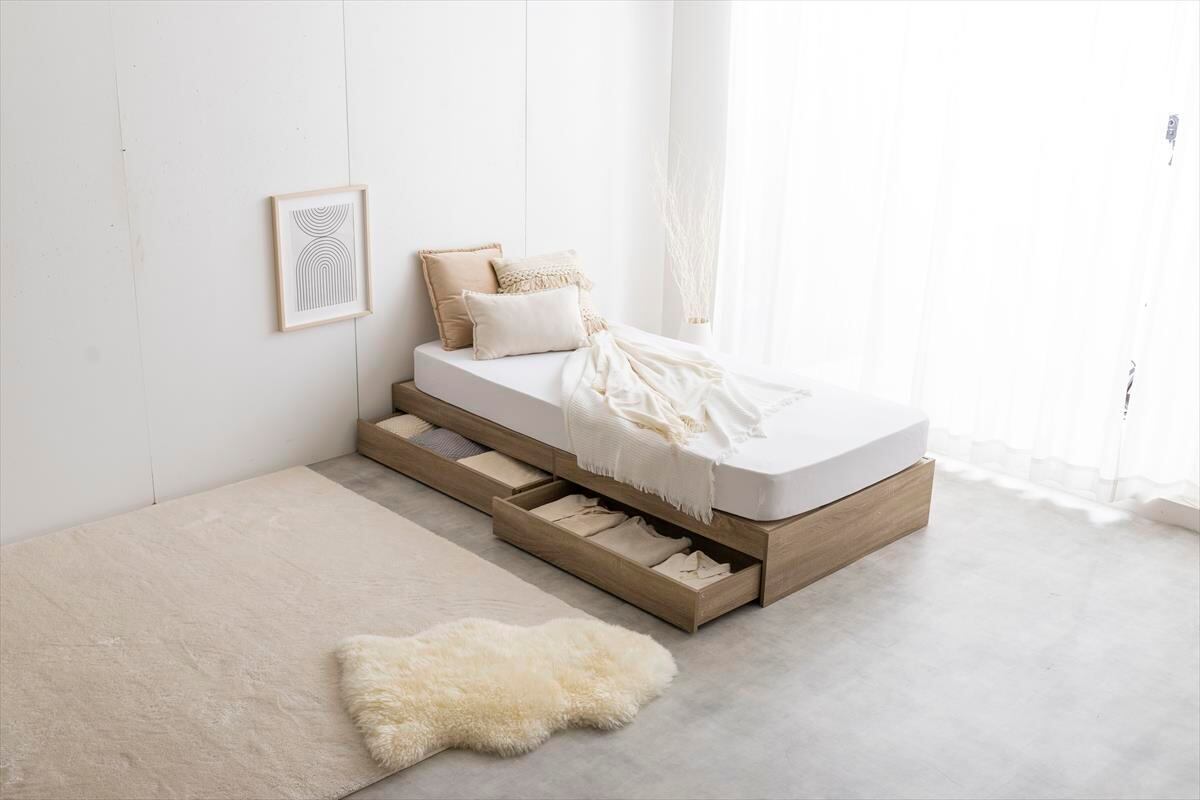 【シングル】ナチュラルモダンデザインの『Glad』ヘッドレス収納付きベッド