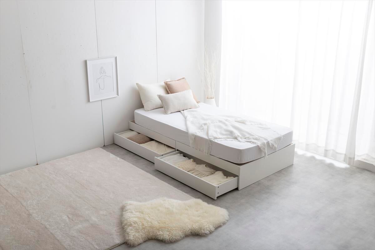 【シングル】Glad ヘッドレス収納付きベッド(高密度アドバンスポケットコイルマットレス付き)