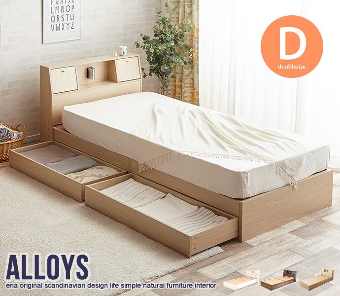 【ダブル】 Alloys(アロイス)引出し付ベッド(フレームのみ)