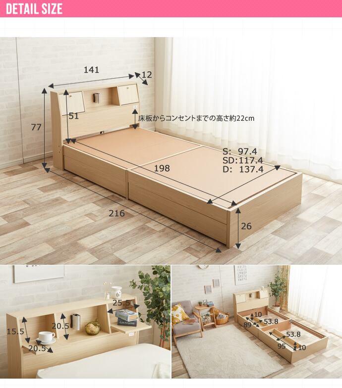 ※ベッドフレームとマットレスのサイズについて、若干の誤差がある場合がございます。あらかじめご了承ください。
