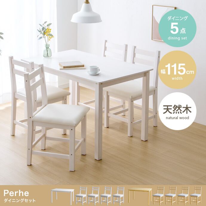 【5点セット】Perhe 幅115cm ダイニングチェア4脚+テーブル