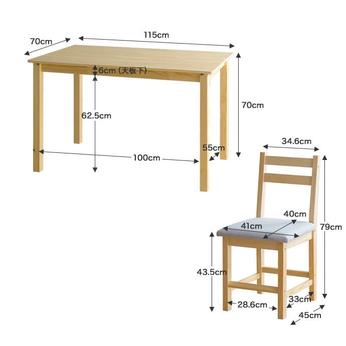 【チェア】幅41cm×奥行45cm×高さ79cm(座面高:43.5cm)